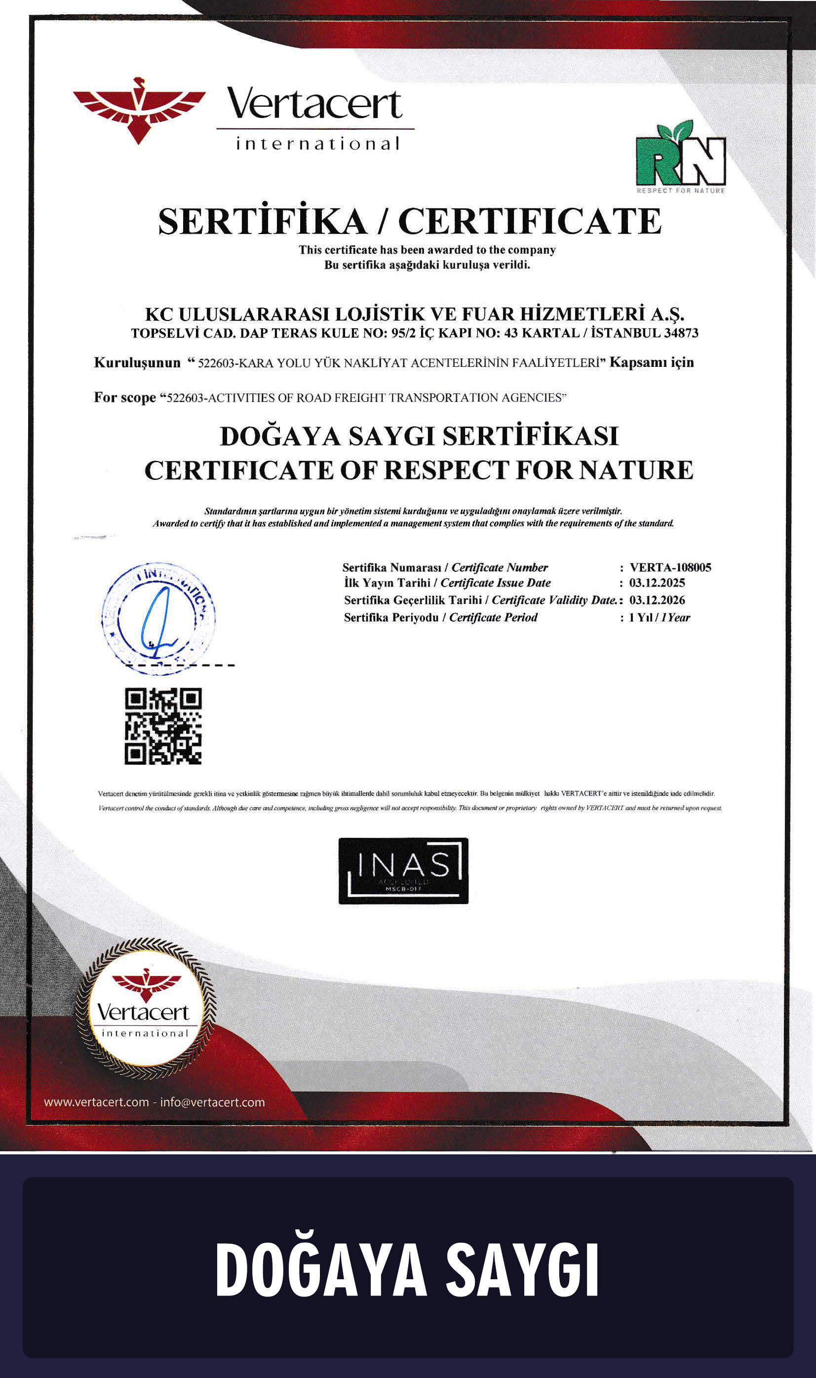 SERTİFİKALARIMIZ
